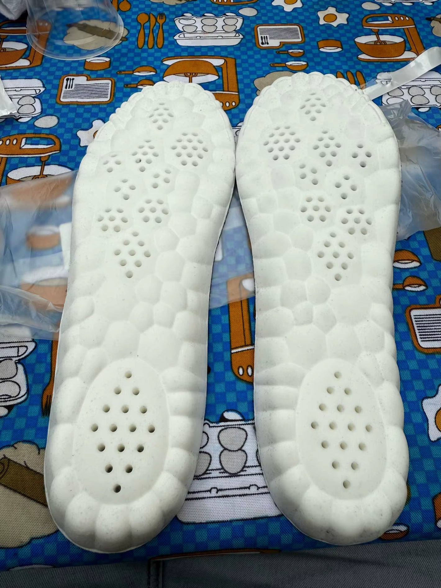 Material: PU (polyurethane) with breathable fabric. PU is a common material in insoles due to its flexibility, durability, and shock absorption capacity. The breathable fabric improves ventilation and reduces sweating.